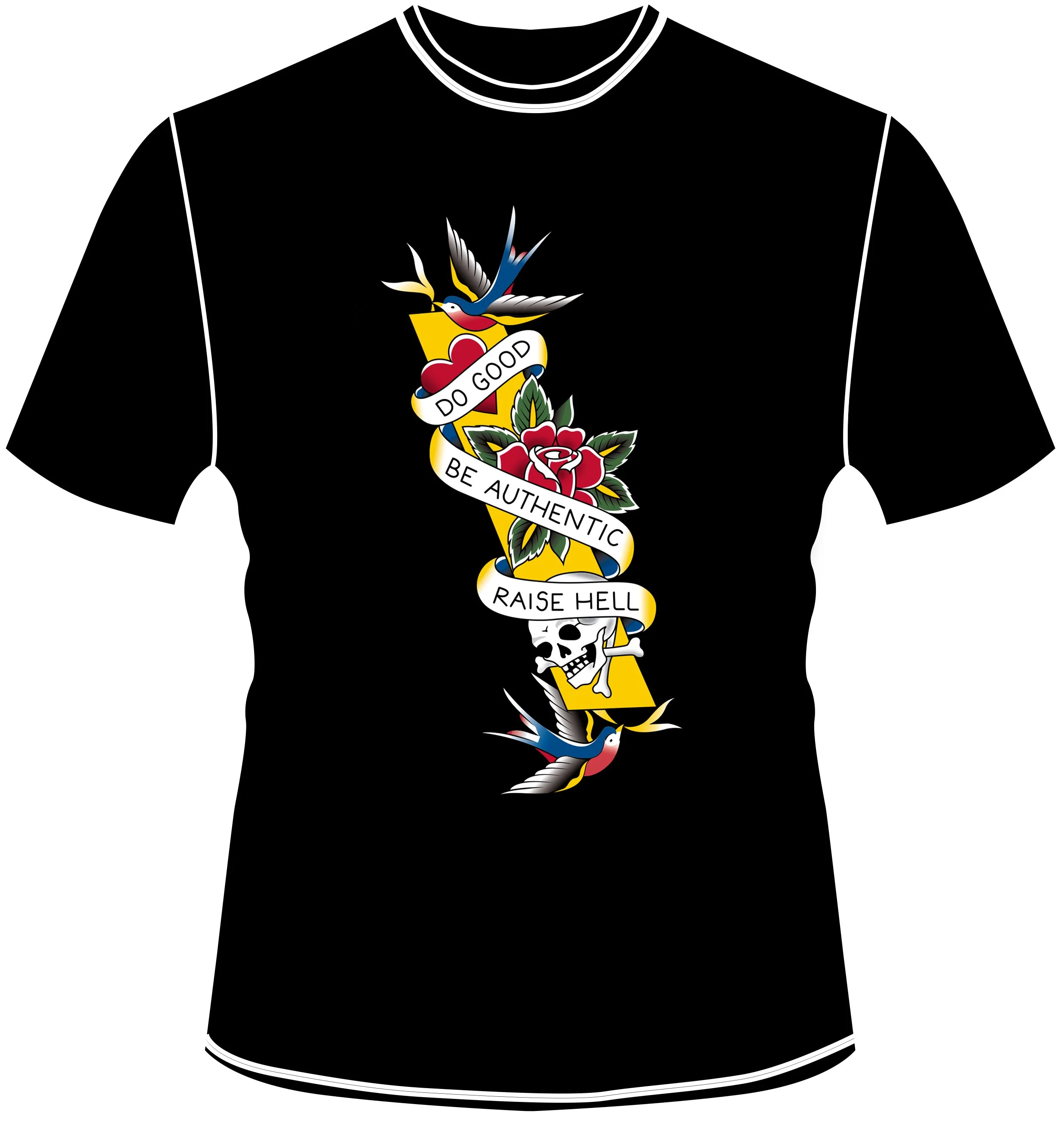 In honor of the agency’s 5 year anniversary and annual meeting, TBWA\Worldhealth’s C-suite invited its employees to design a t-shirt that represents its core values: Do Good, Be Authentic, & Raise Hell.